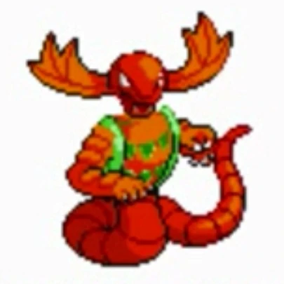 Skullsaber throws red skulls at his opponents. Has a chance to flinch.